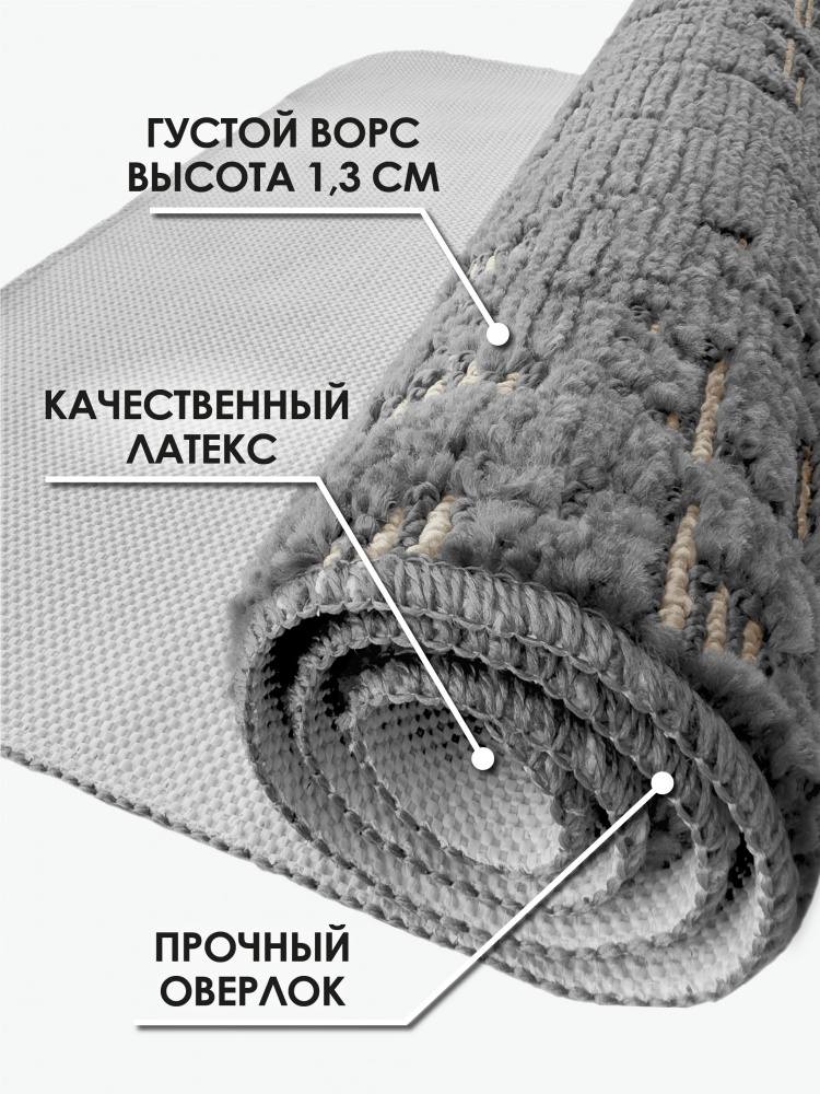 Создайте уют и комфорт в своем доме с ковриками серии АРТ! С плотным ворсом в 13 мм, коврики обеспечивают мягкое и комфортное ощущение под ногами.¶Коврики серии АРТ изготовлены из высококачественных материалов: основа из латекса и ворс из полипропилена обеспечивают надежность и долговечность. Коврики АРТ будут радовать вас долгие годы, сохраняя свою первоначальную привлекательность и функциональность.¶Подходят для любого помещения - от прихожей до ванной комнаты. Они легко впитывают влагу и предотвращают скольжение, сохраняя вашу безопасность.¶Коллекция ковриков серии АРТ отличается модным дизайном, который гармонично впишется в любой стиль вашего интерьера. Вы можете выбрать из разнообразных цветов и узоров, чтобы подчеркнуть свою индивидуальность и создать теплую и уютную атмосферу. Можно стирать в стиральной машине при 30 градусах, что облегчает уход и поддержание их чистоты и свежести.¶