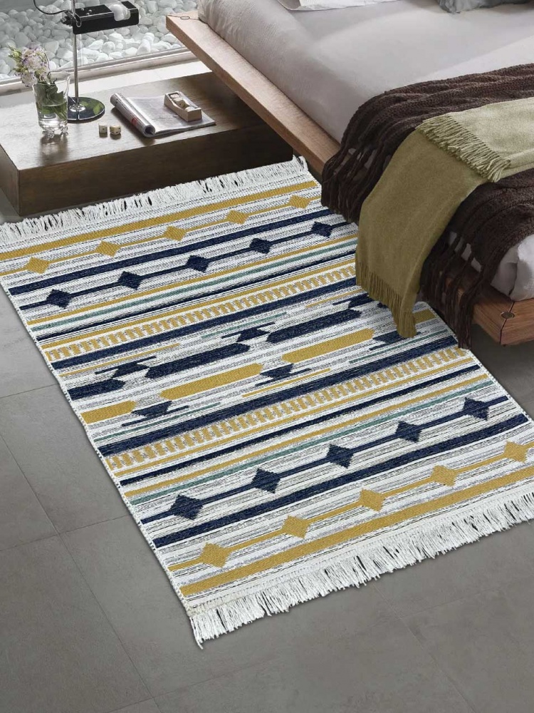 Стильный, модный, и главное - практичный, безворсовой коврик SKANDY. Оригинальность двусторонних ковриков заключается в их дизайне, который позволяет легко и быстро преобразить интерьер. SKANDY лёгкие, но при этом прочные и приятные на ощупь. Изящная бахрома придает коврику легкость и воздушность. Надоел рисунок или запачкалась поверхность ковра? Просто переверните его!