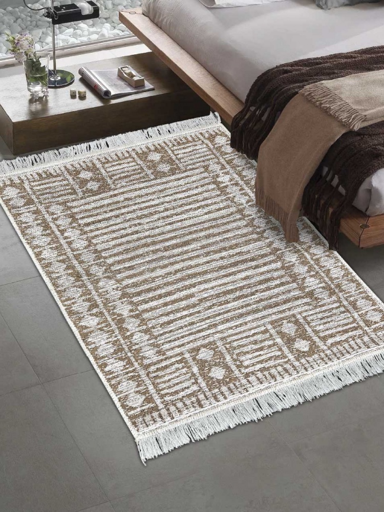 Стильный, модный, и главное - практичный, безворсовой коврик SKANDY. Оригинальность двусторонних ковриков заключается в их дизайне, который позволяет легко и быстро преобразить интерьер. SKANDY лёгкие, но при этом прочные и приятные на ощупь. Изящная бахрома придает коврику легкость и воздушность. Надоел рисунок или запачкалась поверхность ковра? Просто переверните его!
