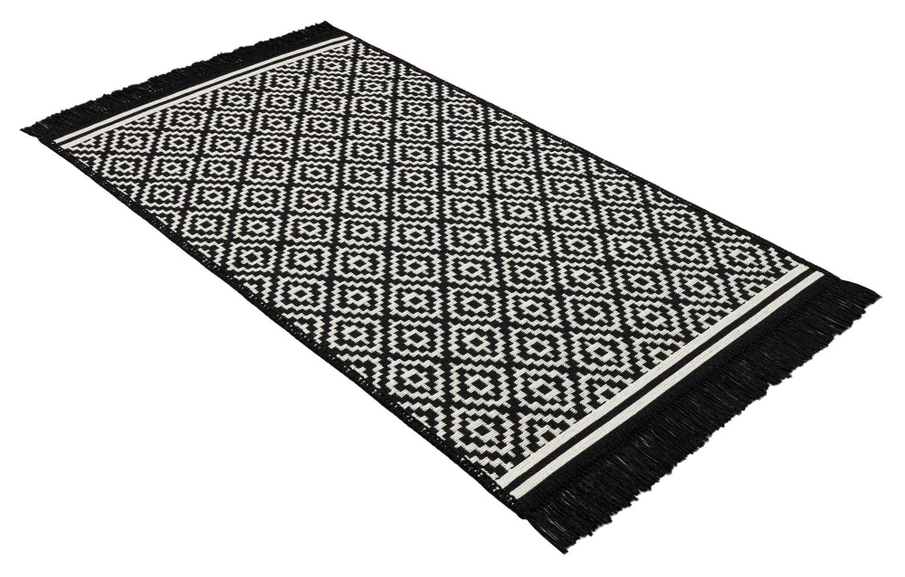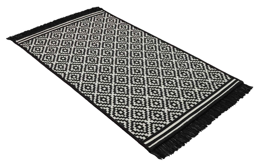 Стильный, модный, и главное - практичный, безворсовой коврик SKANDY. Оригинальность двусторонних ковриков заключается в их дизайне, который позволяет легко и быстро преобразить интерьер. SKANDY лёгкие, но при этом прочные и приятные на ощупь. Изящная бахрома придает коврику легкость и воздушность. Надоел рисунок или запачкалась поверхность ковра? Просто переверните его!