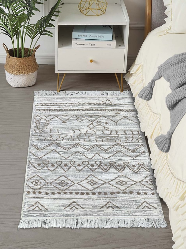 Стильный, модный, и главное - практичный, безворсовой коврик SKANDY. Оригинальность двусторонних ковриков заключается в их дизайне, который позволяет легко и быстро преобразить интерьер. SKANDY лёгкие, но при этом прочные и приятные на ощупь. Изящная бахрома придает коврику легкость и воздушность. Надоел рисунок или запачкалась поверхность ковра? Просто переверните его!