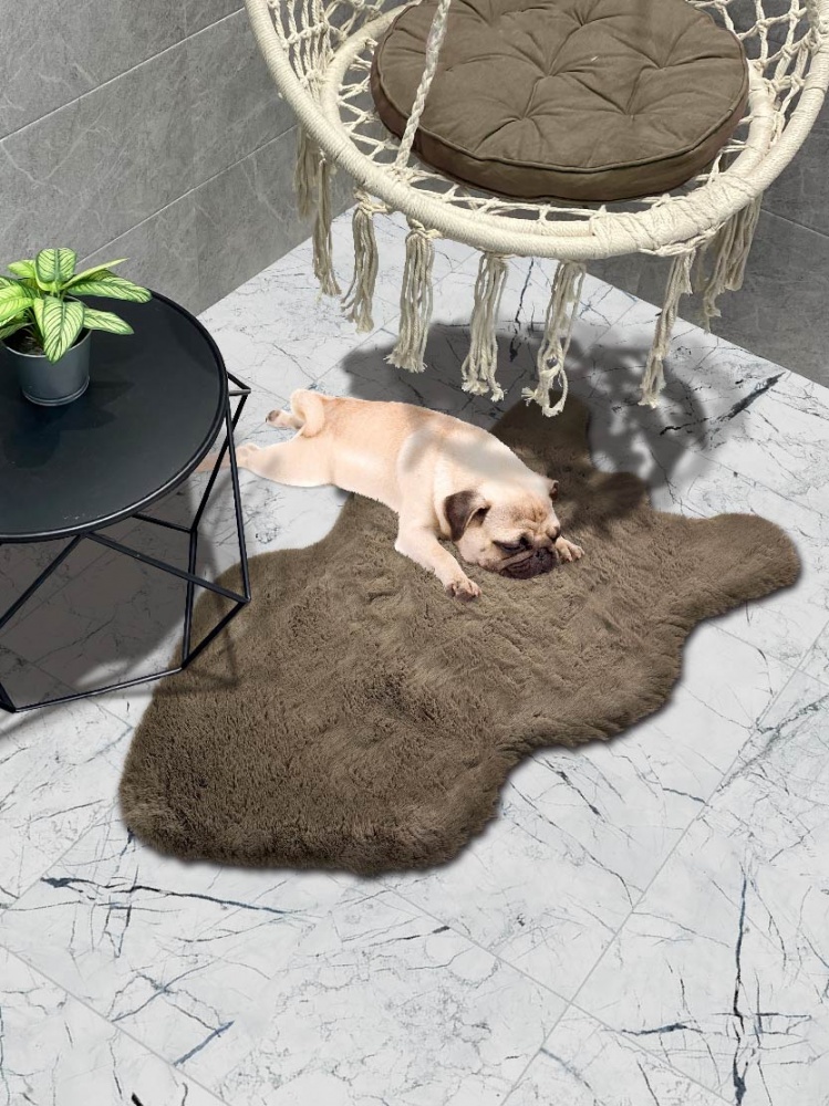 Уютные меховые коврики, которые покорят ваше сердце! Роскошный меховой коврик отличается от натуральной шкуры только тем, что при его изготовлении не пострадало ни одно животное. Их приятно положить у постели, и они идеально подойдут для создания атмосферы спокойствия и комфорта в любой комнате. Меховые коврики не только будут радовать глаз с эстетической точки зрения, они также обладают множеством непревзойденных свойств! Благодаря противоскользящей латексной основе их можно использовать для ванной и туалета. Кроме того, меховые коврики прекрасно впитывают влагу и обладают гипоаллергенными свойствами, поэтому отлично подходят для детских комнат. Коврик изготовлен из высококачественного полиэстера. Длинный ворс 3 см создаст дополнительное ощущение мягкости под ногами. Всего одним касанием коврик способен перенести вас на прогулку у океана по теплому и мягкому мальдивскому песку. Меховой коврик неприхотлив в уходе, достаточно постирать в стиральной машине в режиме быстрой стирки.
