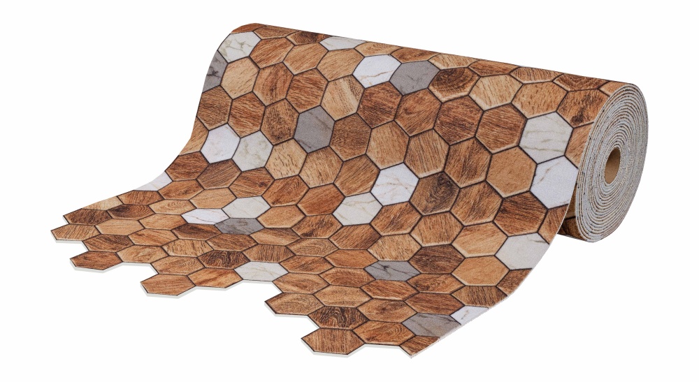 Коврик-дорожка вырезной icarpet PRINT антискользящий (110) "Соты Дерево с мрамором" 200х1500