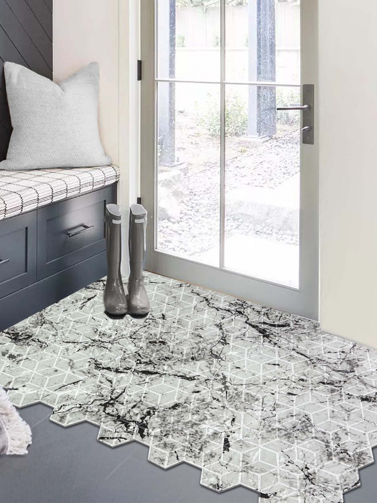 Коврик влаговпитывающий SHAHINTEX DIGITAL PRINT (38) с тиснением соты "Мрамор Итальянский" 100х150 серый S