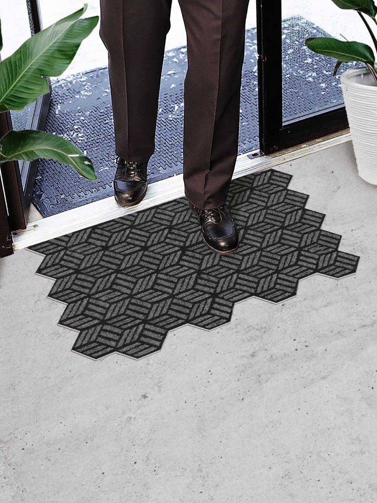 SHAHINTEX Жаккард – 100% полиэстер, основа – термопластичная резина. Придверный влаговпитывающий коврик – незаменим внутри помещения. Его главное преимущество не только в том, что он прекрасно защищает жилое пространство от грязи, пыли, песка, снега и мусора, но также он прост в уходе – его можно стирать в стиральной машине! Режим «быстрая стирка», максимальные обороты - и он как новенький.¶Ворс из полиэстера хорошо впитывает влагу, основа из термопластичной резины не скользит, не пропускает воду. можно стелить на тёплый пол. Благодаря высокой износостойкости, icarpet Ребристый отлично подойдёт не только для дома или квартиры, но также для бизнес- и социальных объектов. Коврик можно вырезать обычными ножницами под свой дверной проём.