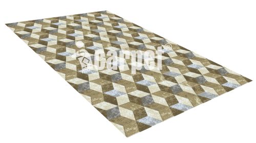 Коврик вырезной icarpet PRINT антискользящий (141) "3D Куб" 100х150 серо-бежевый S