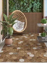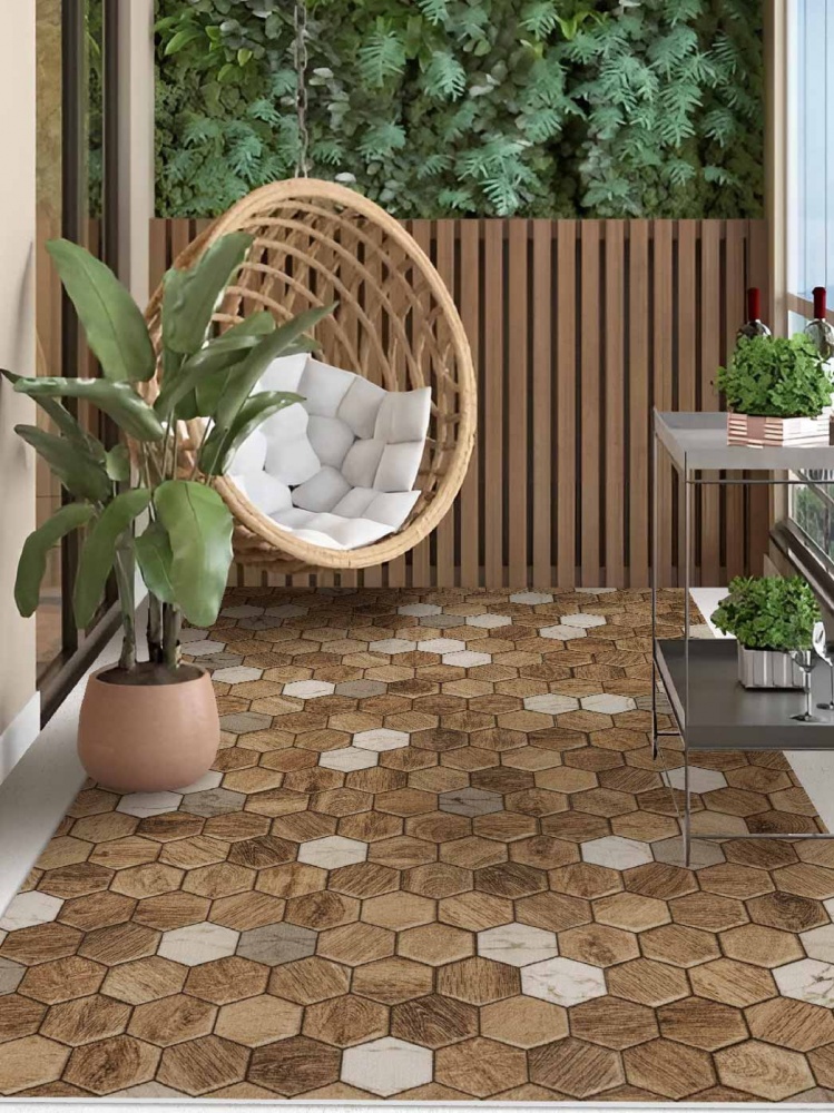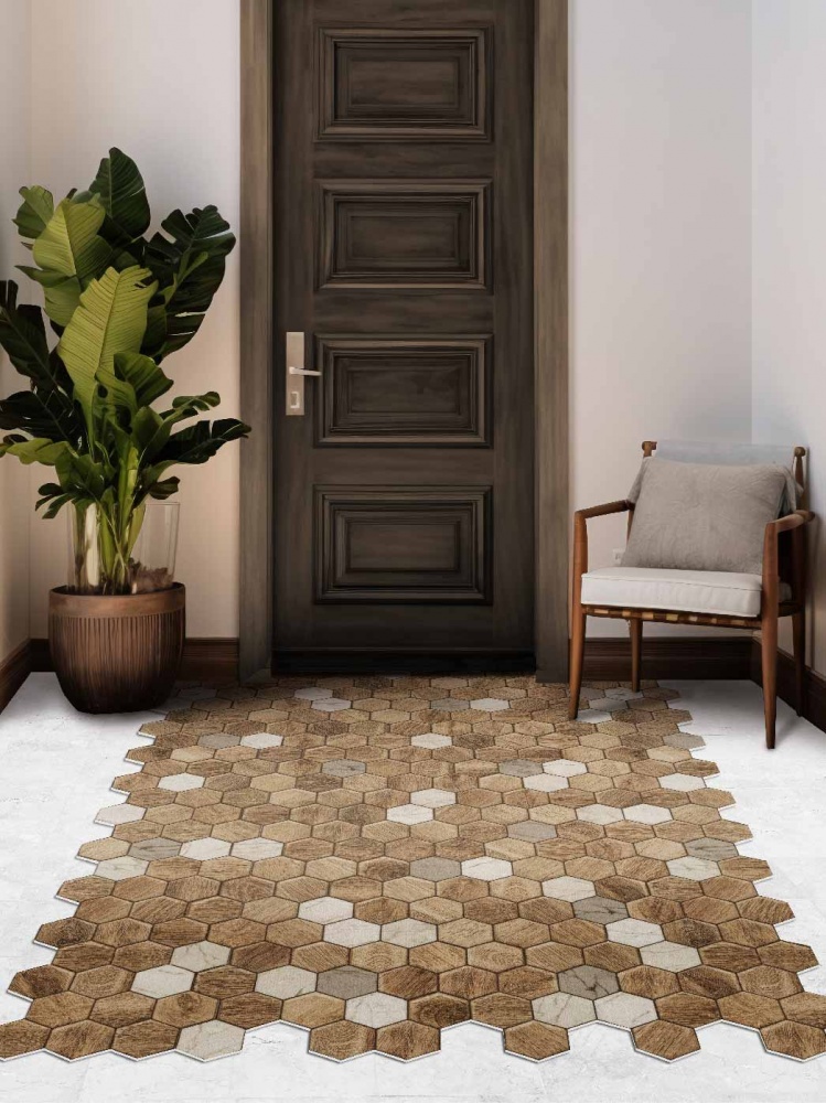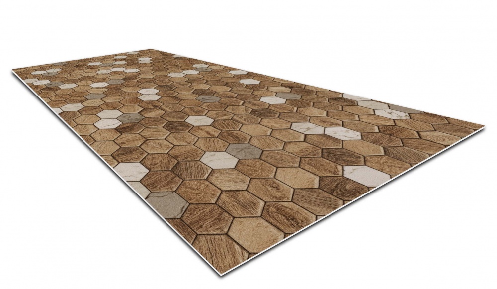 Коврик вырезной icarpet PRINT антискользящий (110) "Соты Дерево с мрамором" 120х200 S