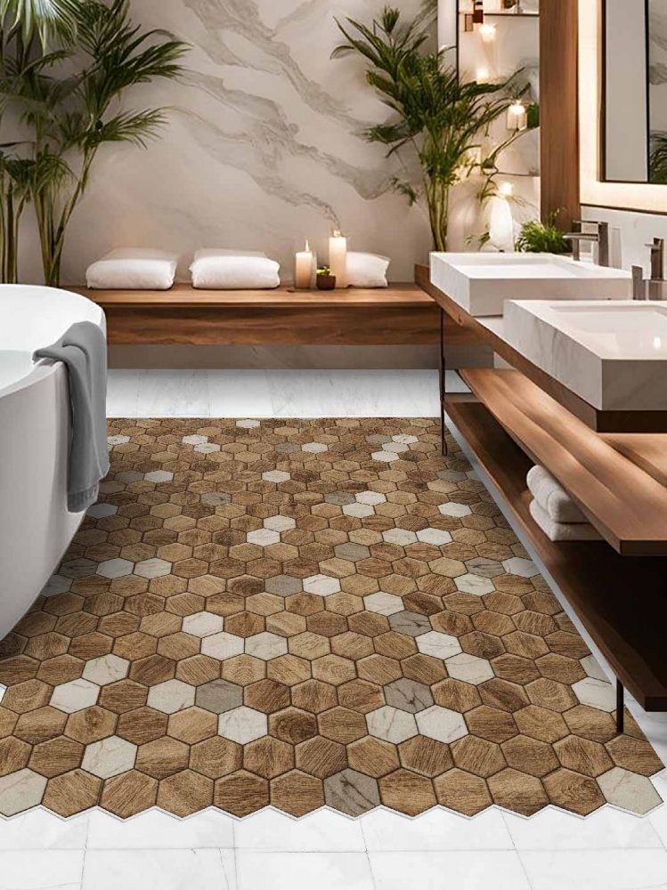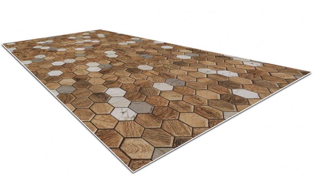 Коврик вырезной icarpet PRINT антискользящий (110) "Соты Дерево с мрамором" 150х200 S