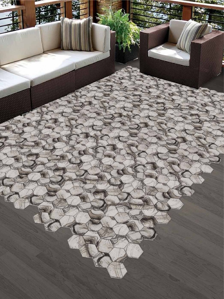 Коврик вырезной icarpet PRINT антискользящий (105) "Соты Мрамор" 200х300 бежевый S