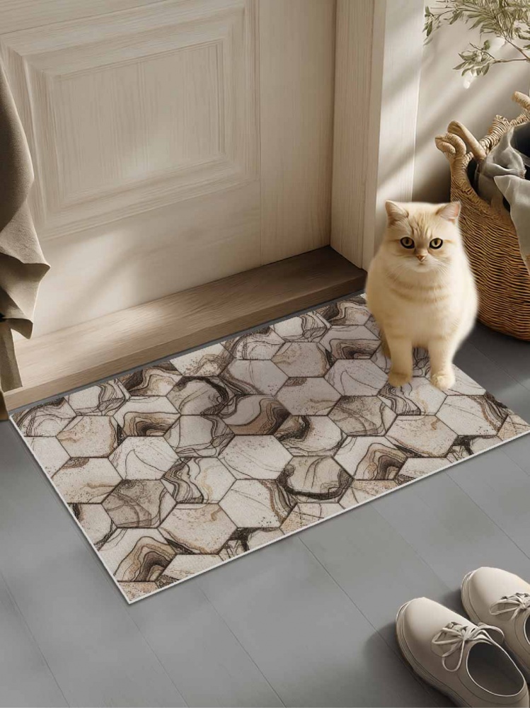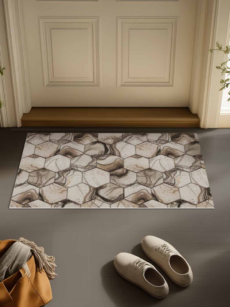 Коврик вырезной icarpet PRINT антискользящий (105) "Соты Мрамор" 50х60 бежевый
