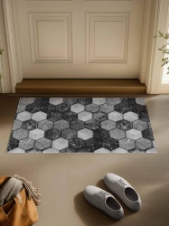 Коврик вырезной icarpet PRINT антискользящий (128) "Соты Мрамор" 50х60 чёрно-серый
