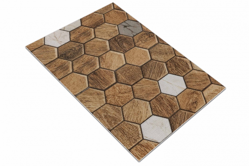 Коврик вырезной icarpet PRINT антискользящий (110) "Соты Дерево с мрамором" 50х80