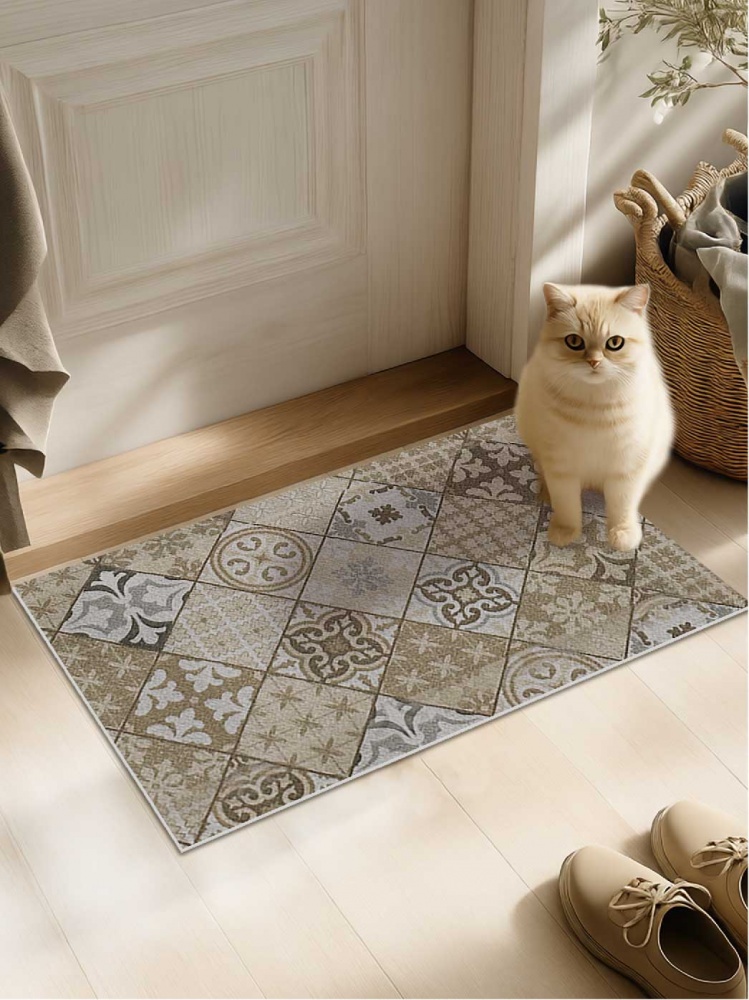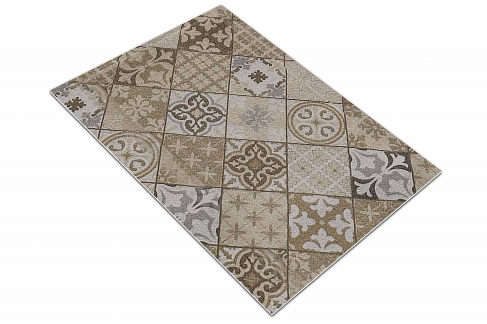 Коврик вырезной icarpet PRINT антискользящий (137) "Плитка Карфаген" 50х80 бежевый с серым