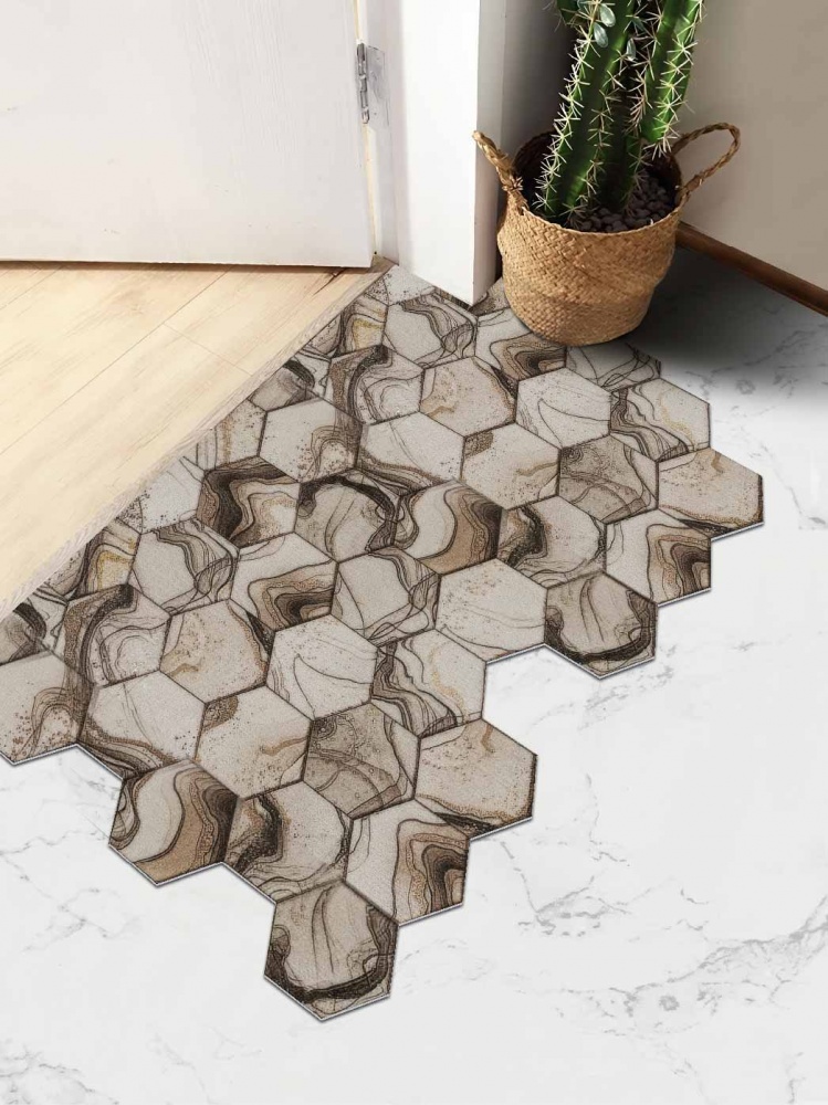 Коврик вырезной icarpet PRINT антискользящий (105) "Соты Мрамор" 60х100 бежевый