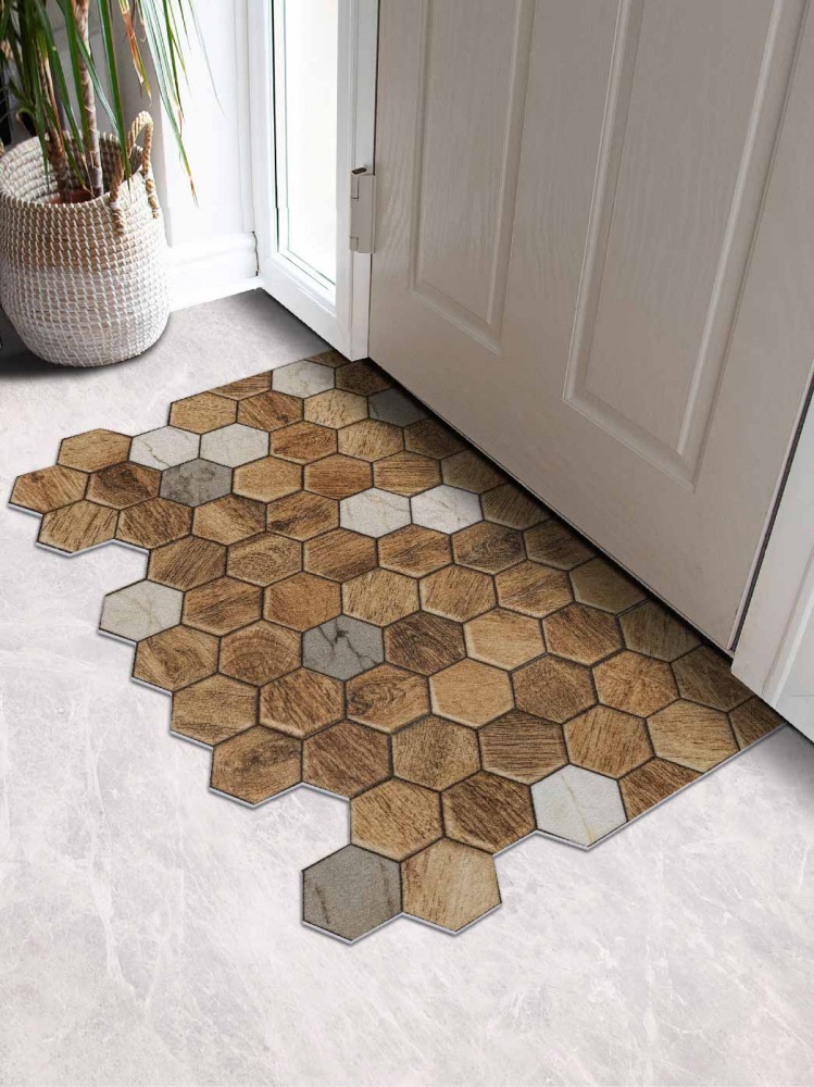 Коврик вырезной icarpet PRINT антискользящий (110) "Соты Дерево с мрамором" 60х100