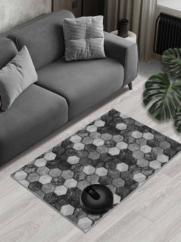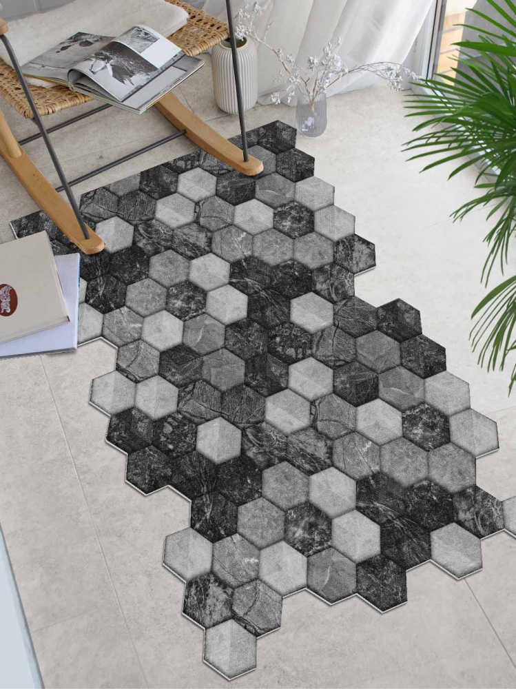 Коврик вырезной icarpet PRINT антискользящий (128) "Соты Мрамор" 80х120 чёрно-серый