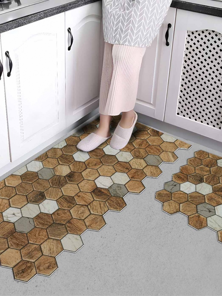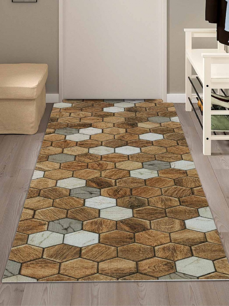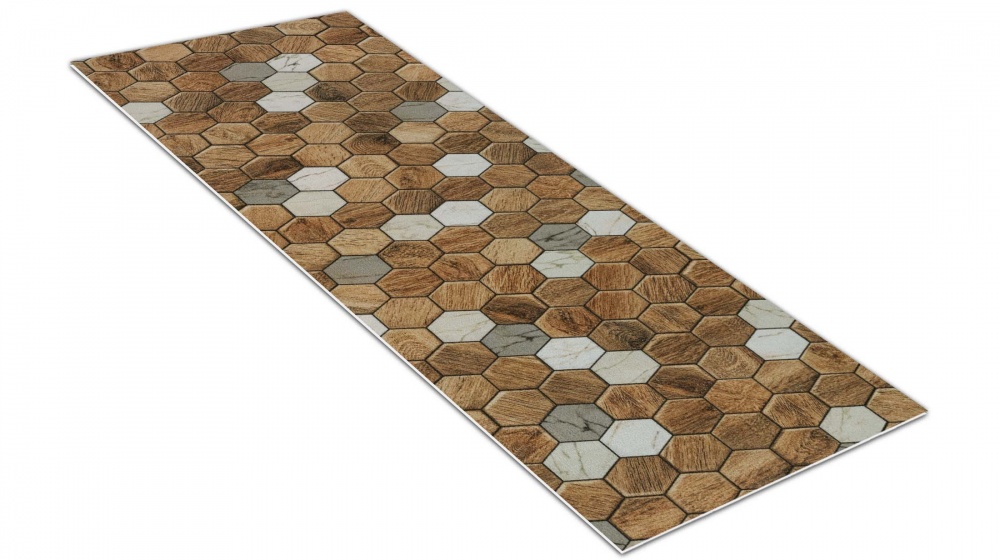 Коврик вырезной icarpet PRINT антискользящий (110) "Соты Дерево с мрамором" 80х200 S