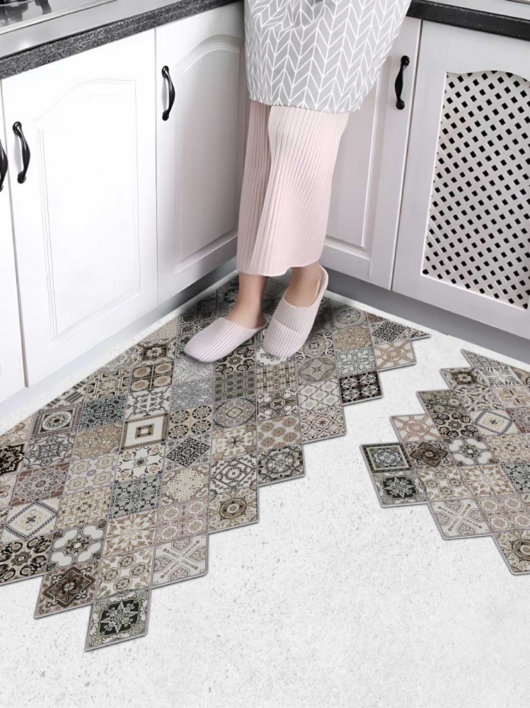 Коврик вырезной icarpet PRINT антискользящий (133) "Плитка Тоскана" 80х200 мокко S
