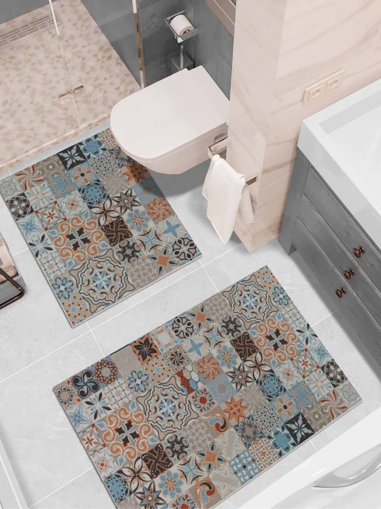Набор ковриков вырезных icarpet PRINT антискользящих (103) "Плитка Марокко" 60х100+60х50
