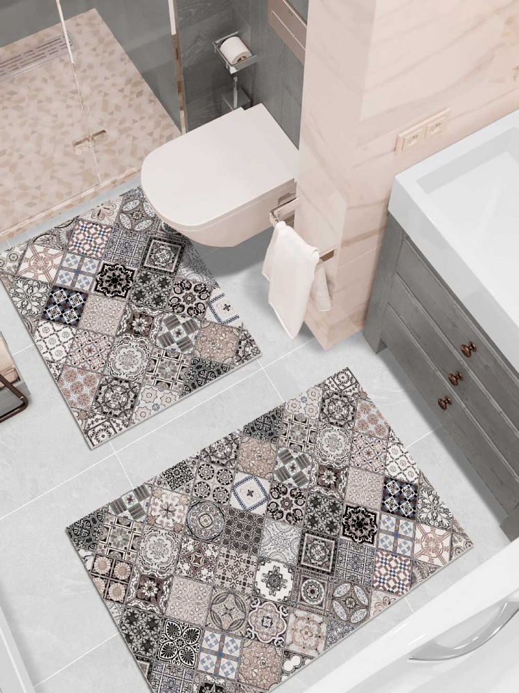 Набор ковриков вырезных icarpet PRINT антискользящих (133) "Плитка Тоскана" 60х100+60х50 мокко