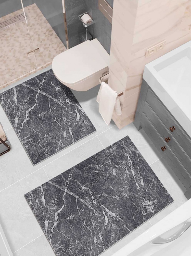 Набор ковриков вырезных icarpet PRINT антискользящих (134) "Мрамор" 60х100+60х50 серый