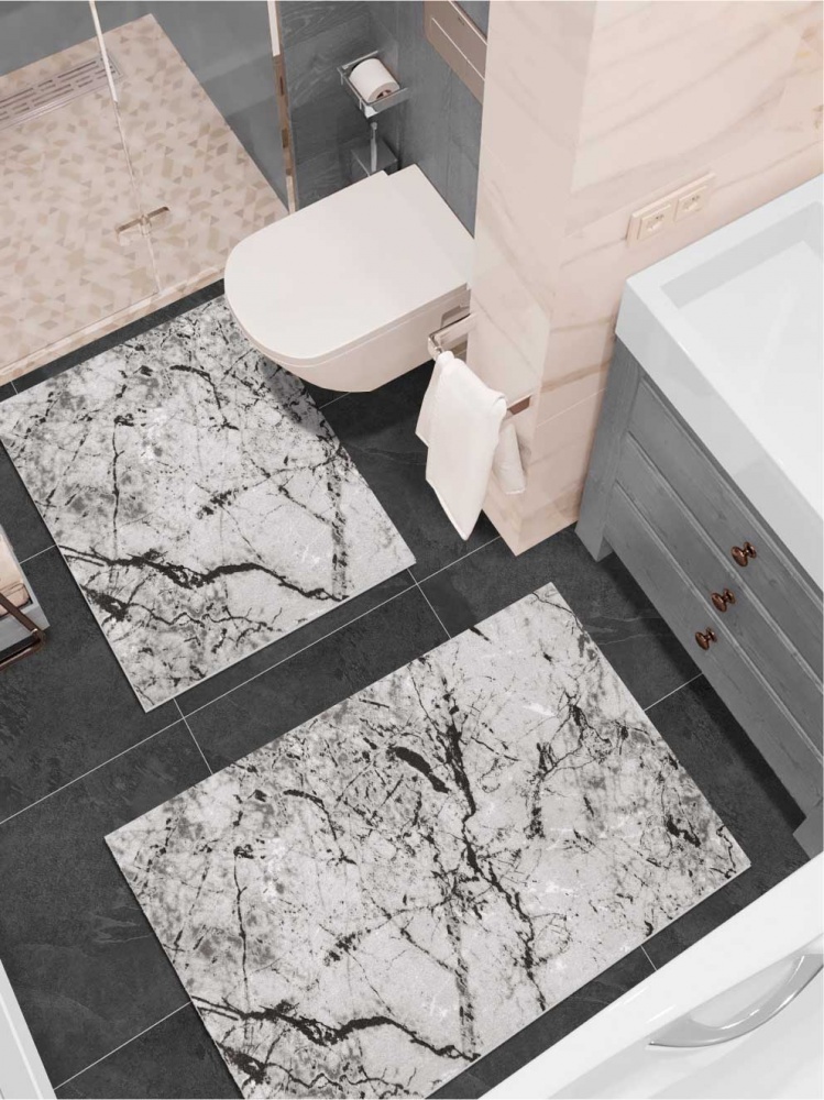 Набор ковриков вырезных icarpet PRINT антискользящих (138) "Мрамор Итальянский" 60х100+60х50 серый S