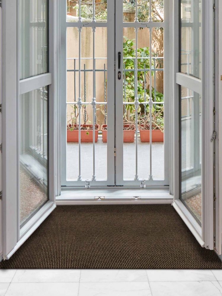 Коврик можно вырезать обычными ножницами под свой дверной проём.